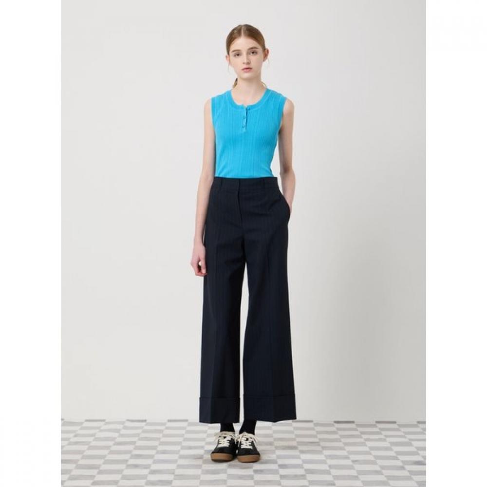 The pinstripe pattern creates a silhouette that makes the legs appear longer, and the fixed turn-up at the hem adds a stylish touch.