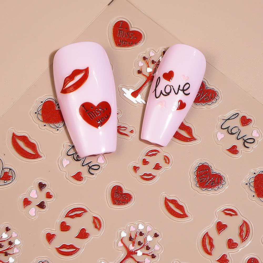 Elevate your Valentine's Day look with these 5D Fiery Red Lips Embossed Nail Stickers. Featuring a vivid red hue and intricate lip designs, these stickers offer a fun and romantic touch to your manicure. Easy to apply and durable, they provide a salon-quality finish at home, making them perfect for date night or any special occasion. Embrace the spirit of love and add a bold pop of color to your nails effortlessly.