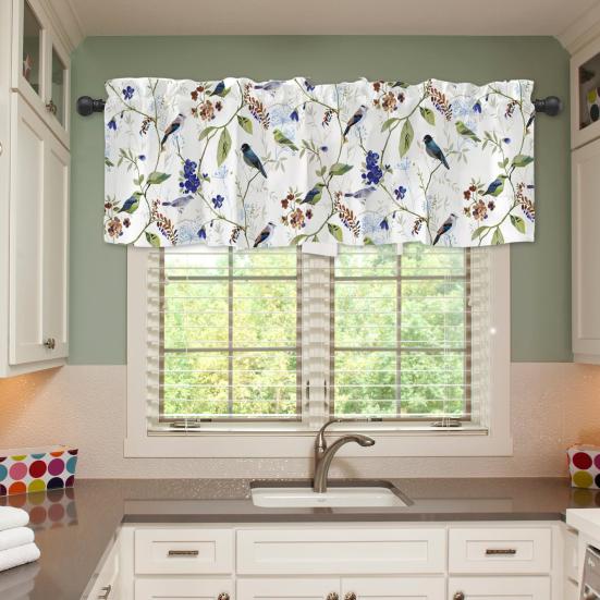 This floral curtain valance combines style and functionality, crafted from high-quality soft polyester fiber with professional printing and sewing for durability and a comfortable feel. Its rod pocket design fits most standard or decorative rods, ensuring easy installation and smooth sliding. The light-filtering fabric gently diffuses sunlight, creating a warm, inviting atmosphere ideal for kitchens, bathrooms, dining rooms, bedrooms, or laundry areas.