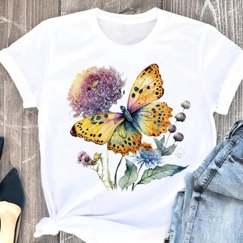 Butterfly Cute Print European Clothing Top Short-sleeved T-shirt Women Clothing Graphic Tshirts Oversized T Shirt Tops