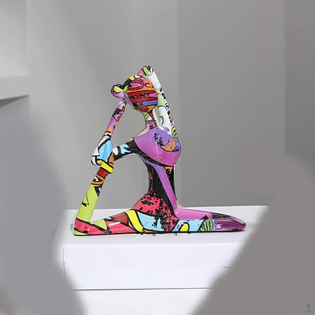 Ornament Statue Yoga Women Pose Figurine Graffiti Sculpture Indoor Garden Home Decor