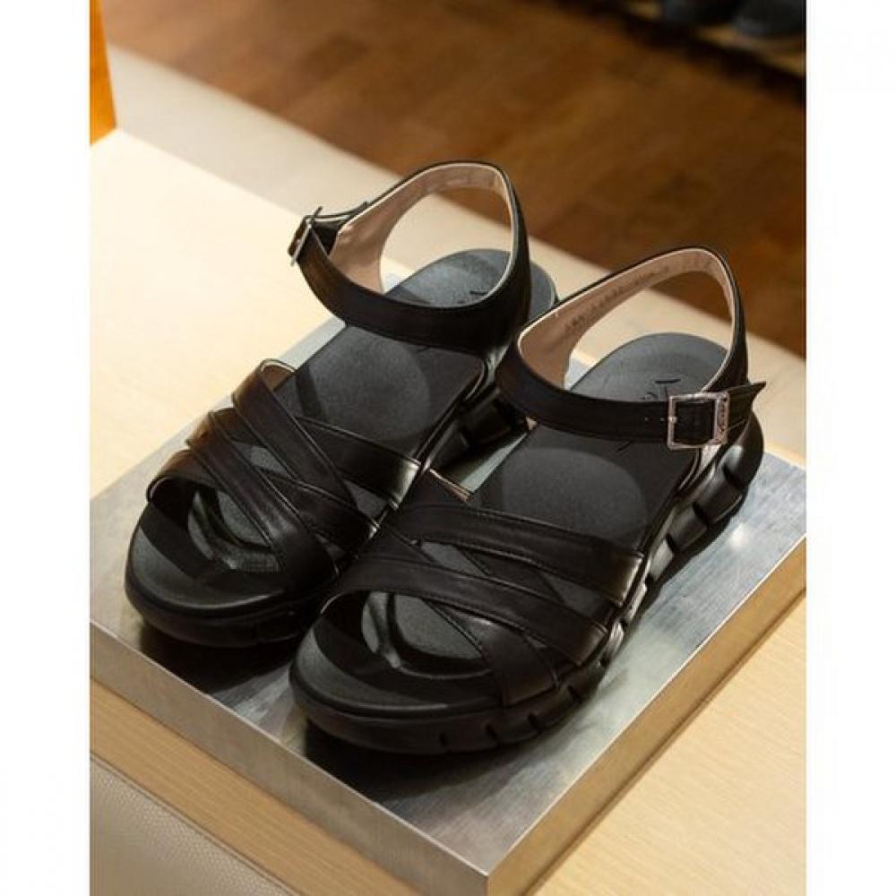 The Bainel Women's Comfort Sandal Black 353C features a soft leather construction that wraps around the instep. The footbed offers excellent cushioning for a comfortable fit. Additionally, the urethane molded sole provides elasticity, ensuring comfort even during prolonged wear.