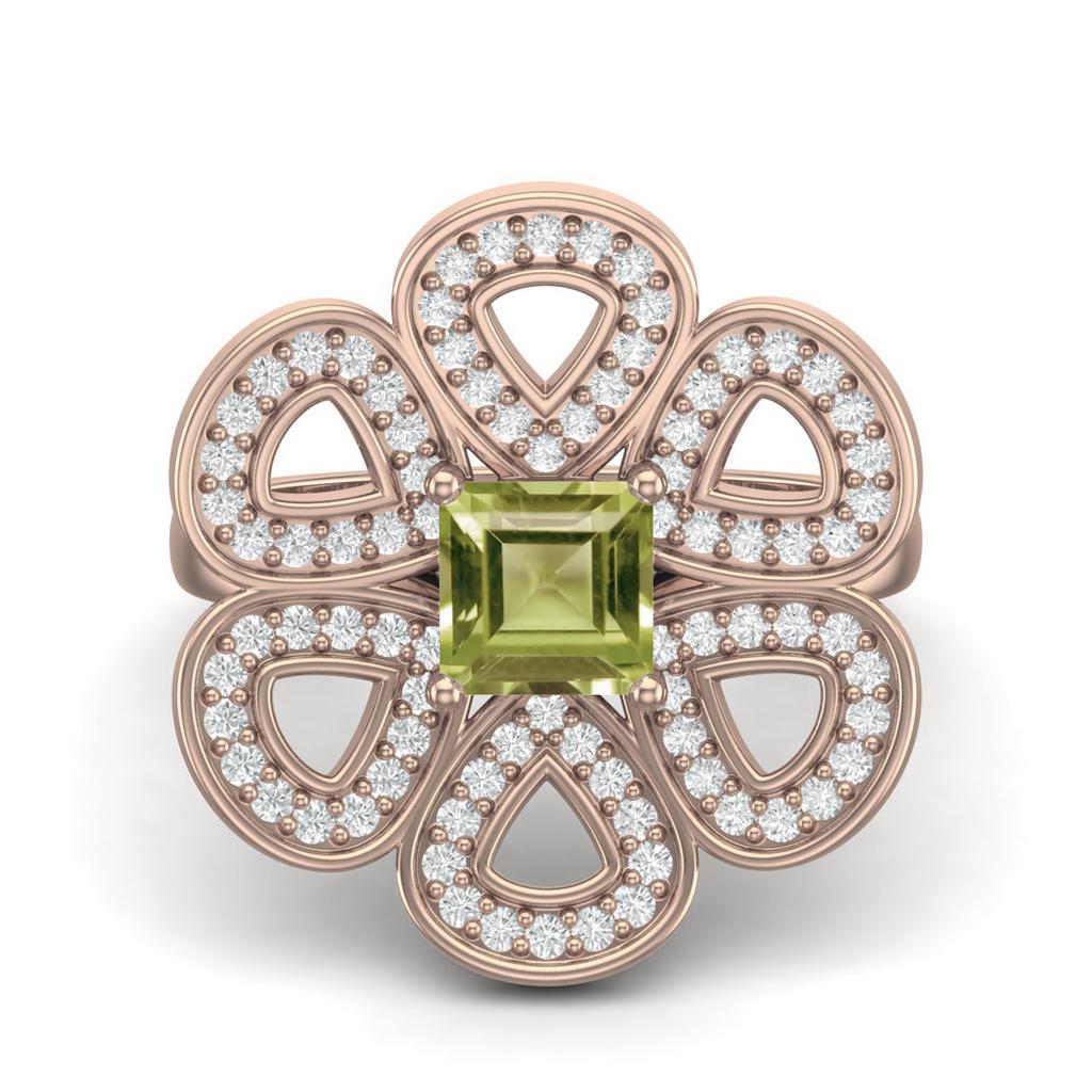 Gemstone Details: Main Stone 5X5 MM Square Shape Peridot . Total Carat Weight is 1.33 Ctw.