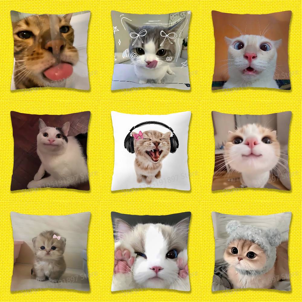 Cat Pet Cute Funny Throw Pillow Case For 45x45cm 40x40cm 30x30cm 50x50cm 55x55cm Square Home Pillowcase Case