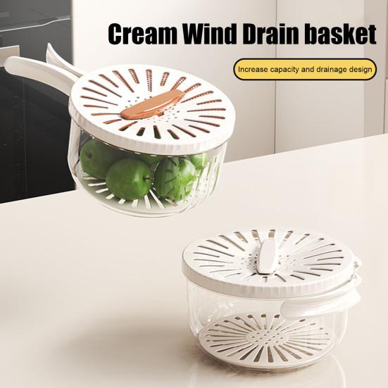 This versatile drain basket is perfect for washing, draining, and storing a variety of fruits and vegetables such as grapes, berries, tomatoes, and leafy greens. Its innovative two-in-one design combines fruit cleaning and storage functions, featuring an integrated strainer lid for efficient draining and preservation.