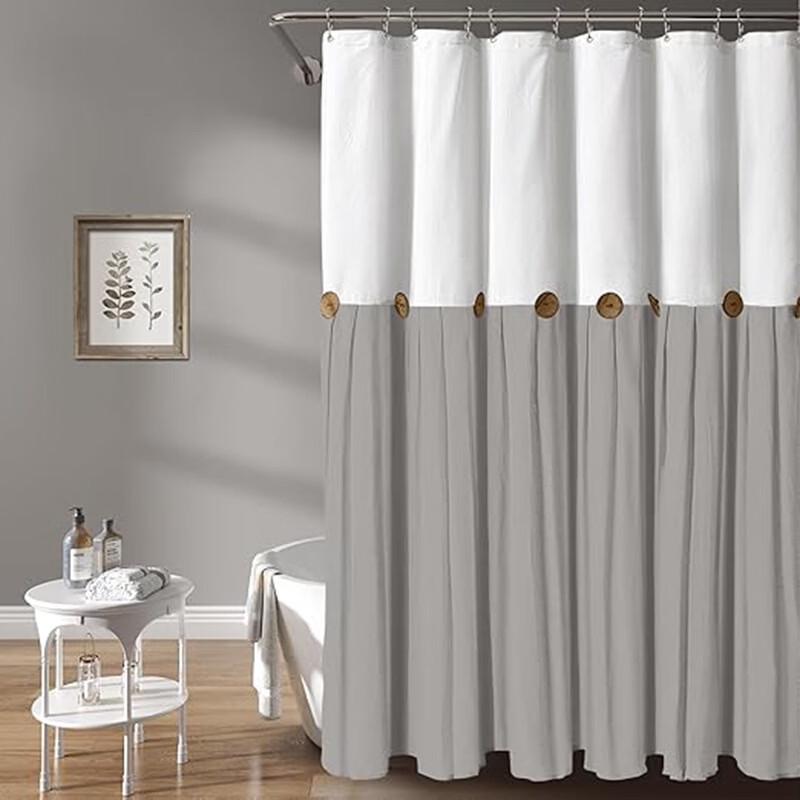 Handun Button-Spliced Skirt Hem Shower Curtain