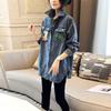 Vintage Blue Denim Shirt Women Loose Fit Korean Style Casual Stand Collar Blouse Spring Autumn Fashion