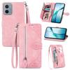 For Motorola Moto G05 4G Zipper Wallet Case with Strap Flower Imprint PU Leather Phone Cover