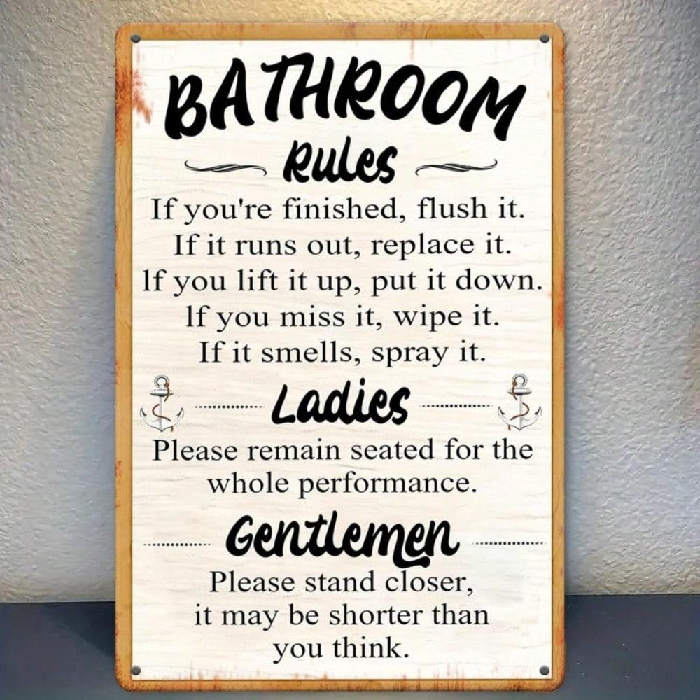 Vintage Bathroom Rules Metal Sign Retro Wall Decor Iron Tin Art Home Cafe Office