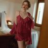 Sexy Pajamas Women's Ice Silk Thin with Chest Pads, Suspenders, Pajamas Three-piece Set, Pure Desire Style Loungewear Can Be Worn Outside