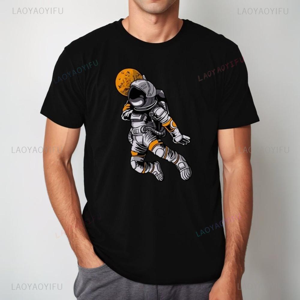 Astronaut Sees The Big Moon Men Graphic T Shirts Summer Loose Breathable High Quality Cotton Tshirt Classic Oneck Shortsleev