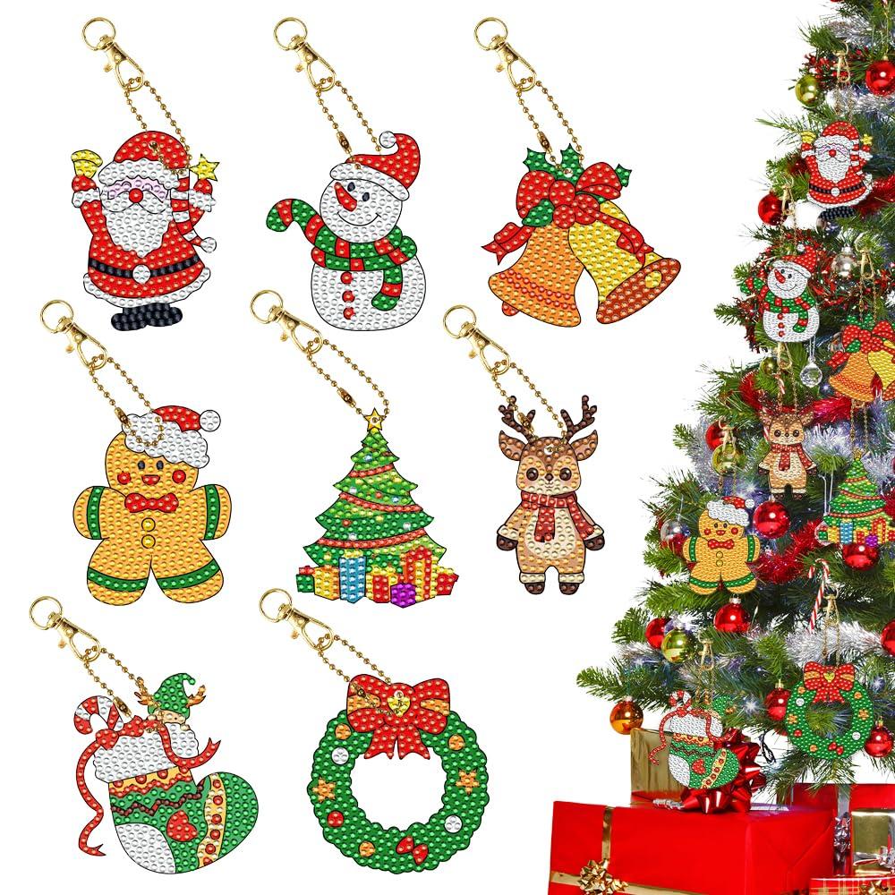 [Product Details] Christmas Diamond Art Keychain Decoration 8-Piece Set. Set includes: Diamond art keychain, metal keychain chain, diamond beads, diamond pen, bead tray, clay glue, and bead storage bag. Materials: Metal keychain + resin rhinestones. [Christmas DIY: Enjoy crafting time with the whole family!] Carefully selected classic Christmas motifs! Liven up the atmosphere of your Christmas party. "It's fun to make, and delightful to display!" The finished product will add color to your room as a beautiful Christmas decoration. It's super easy to make, taking only about 15 minutes, so the whole family can enjoy it. Enjoy the joy and sense of accomplishment of crafting with your family.