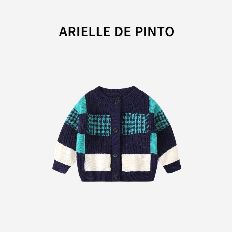 French Arielle De Pinto Boys' Denim Jacket Autumn New Fashion Color-Blocked Cardigan Sweater Top