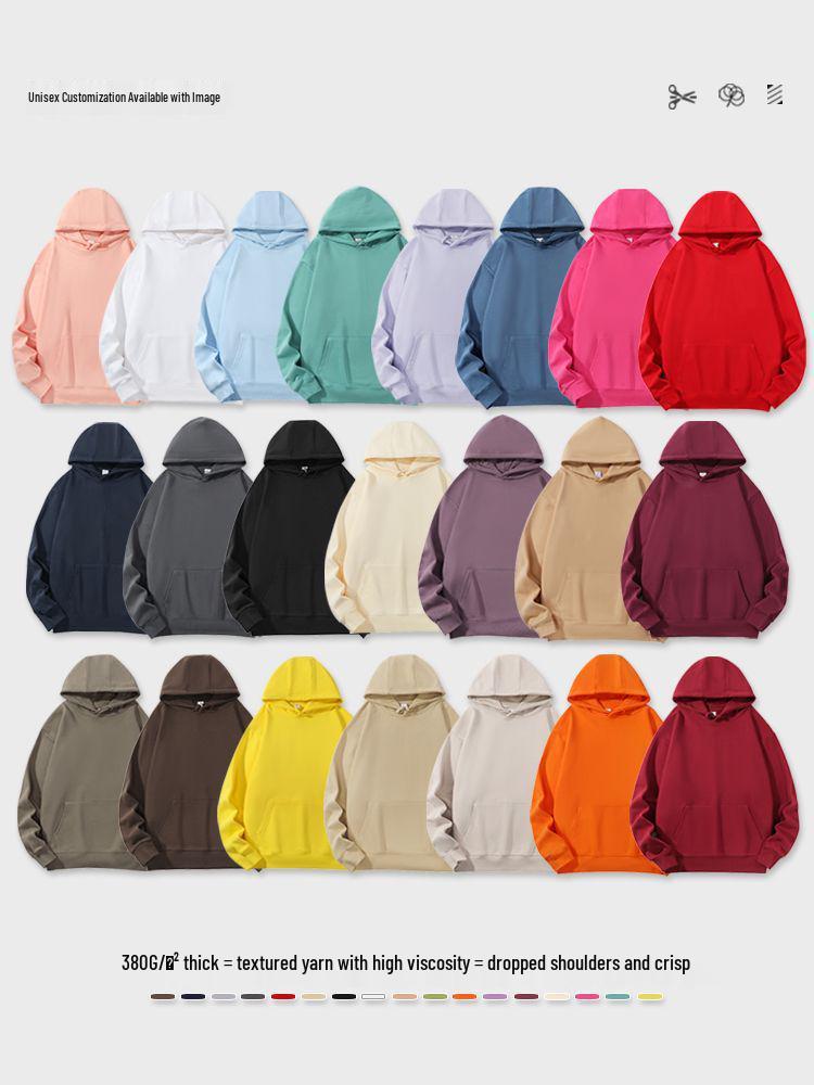 Unisex Heavy-Duty 380g Hoodie, Drop-Shoulder, Loose Fit, Solid Color Cotton, Ideal for Autumn/Winter Sports, Available In Stock.