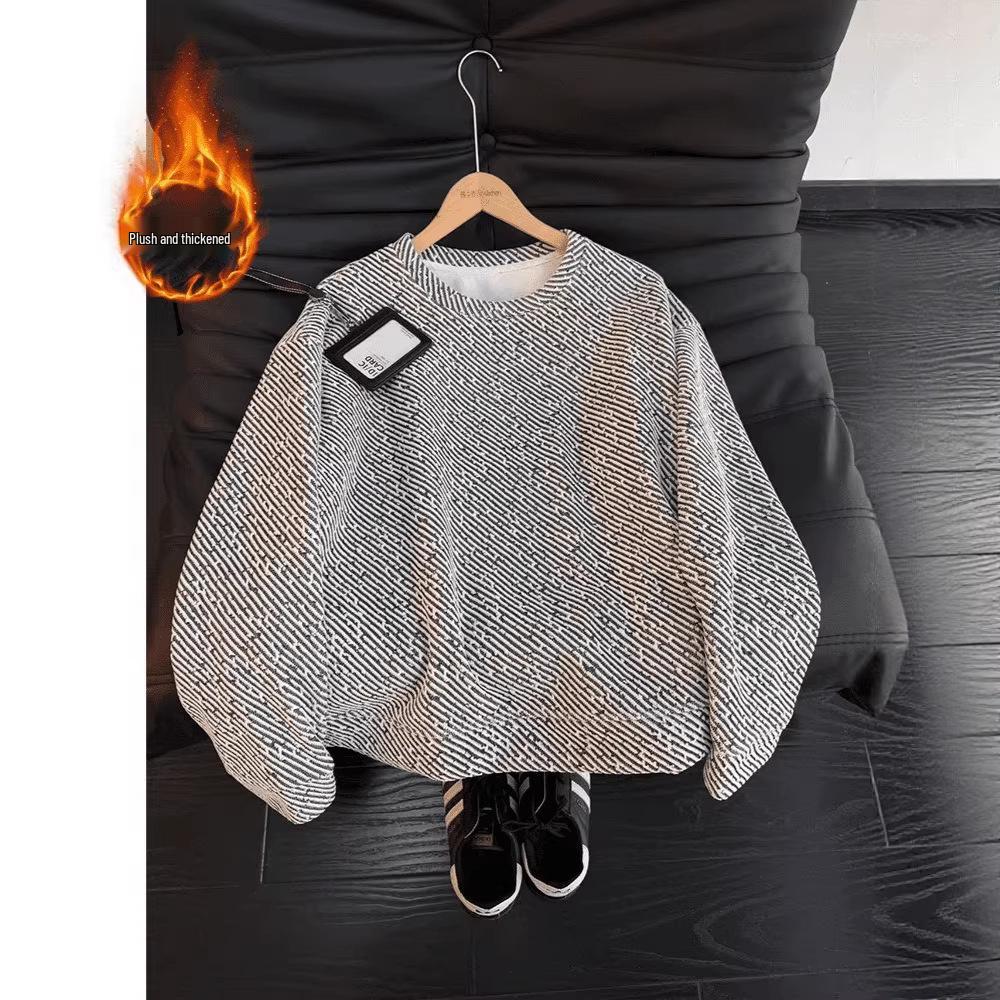 Men's 2026 Zebra Print Velvet-Lined Heavyweight Hoodie: Full Sky Stars, Round Neck, American Style, Autumn/Winter.