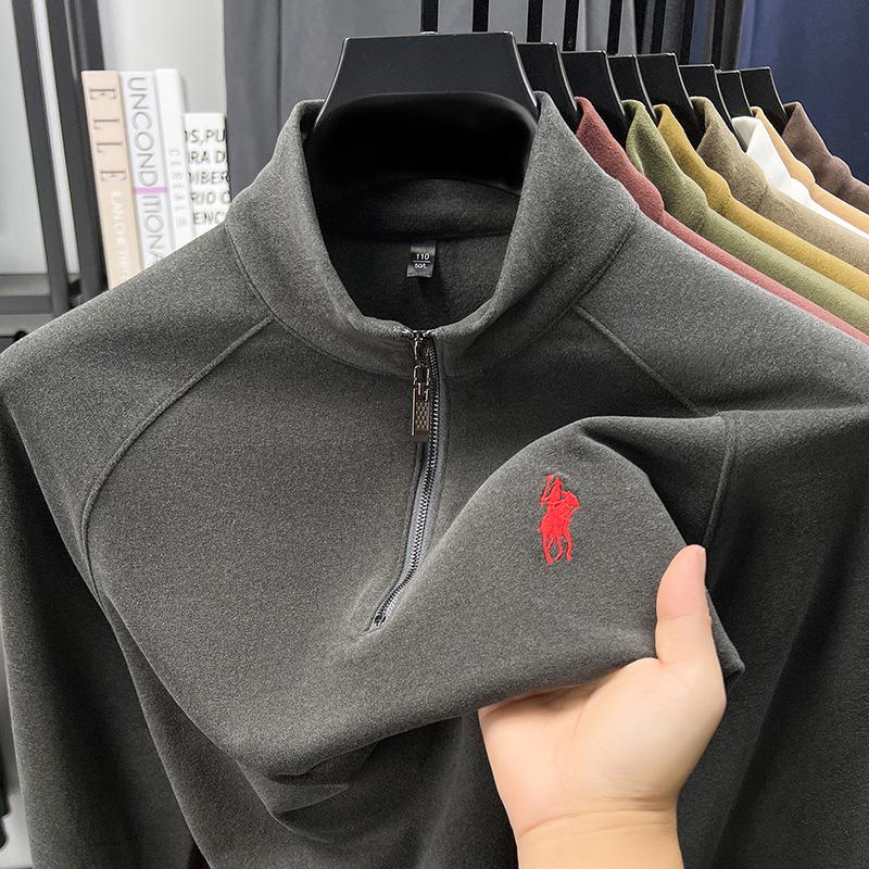 This trendy sweatshirt, designed for the 2025 autumn/winter season, features a versatile double-sided fleece construction for extra warmth and comfort. The half-zip design is complemented by a stand collar, providing a sleek and modern look. Crafted from high-quality polyester fiber, the material ensures durability and a soft, cozy feel. The solid pattern and loose fit offer both style and easy layering, making this long-sleeve sweatshirt a perfect addition to any casual wardrobe.