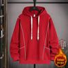 This stylish hooded sweatshirt is designed to keep junior high and high school boys warm and comfortable during the cooler months. Featuring a trendy gradient color block pattern, it captures a modern and dynamic look perfect for teens. Made with thickened cotton material and lined with soft cotton fur, this sweatshirt offers extra warmth and coziness. The long sleeves provide full coverage, while the loose fit ensures ease of movement, making it an ideal choice for both casual outings and school activities during autumn and winter.