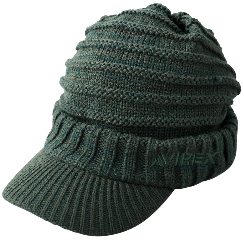 AVIREX Chunky Brimmed Knit Loose Knit Newsboy Cap for Men and Winter Knit Cap One Mixed Cap, Fit, Women, (JP, Alphabet, Size, Green)