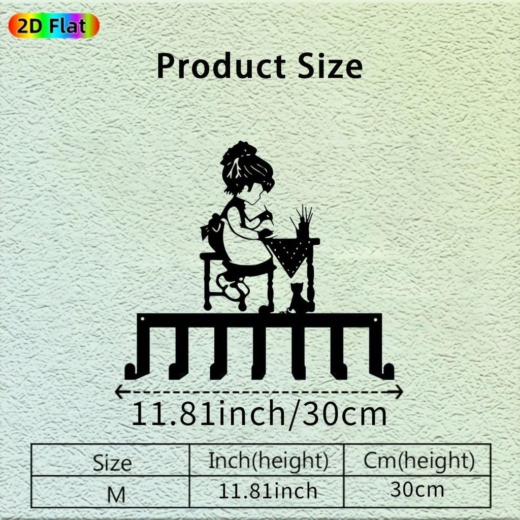 Cat Lover Key Holder Wall Decor 7 Hooks Handmade Metal Wall Art Practical Gift for Hallway Bedroom Living Room
