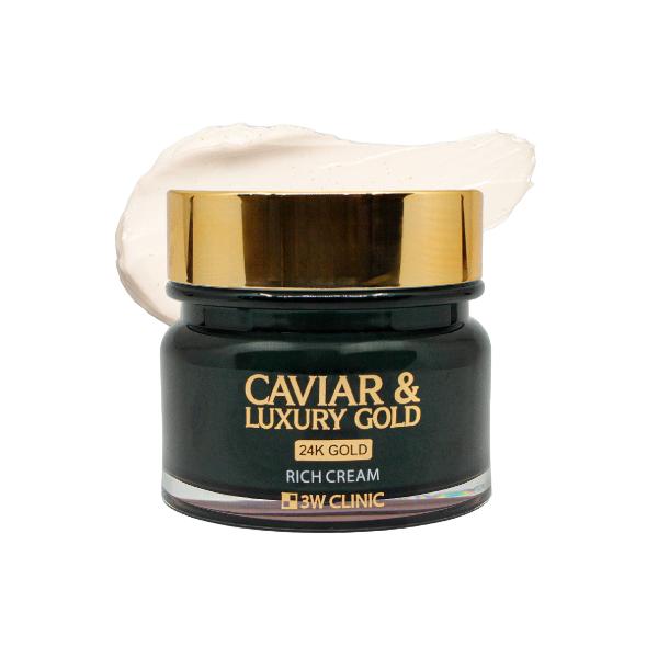 3W CLINIC Caviar & Luxury Gold Rich Cream is a high-nutrition moisturizing cream designed to deliver intensive moisture, firmness, and total anti-aging care.