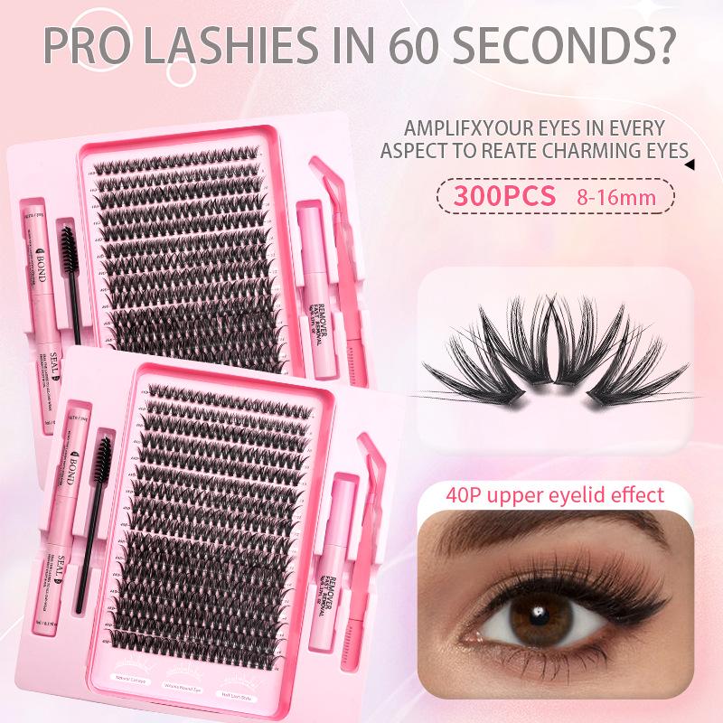 Natural Dense Sectional False Eyelashes with Quick-Set Glue and Tweezers for Beginners