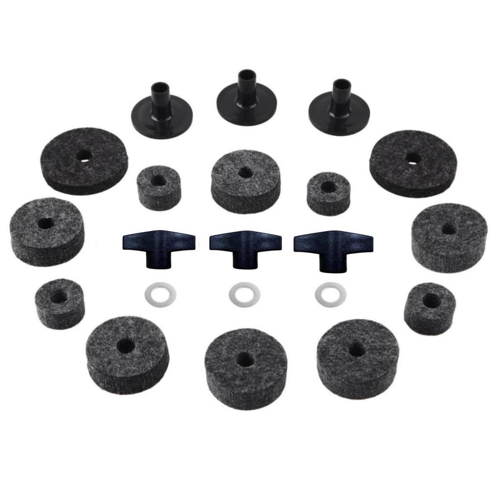 21-Piece Gray Drum Set Accessories: Includes Felt Pads, Sleeves, Wing Nuts & Washers