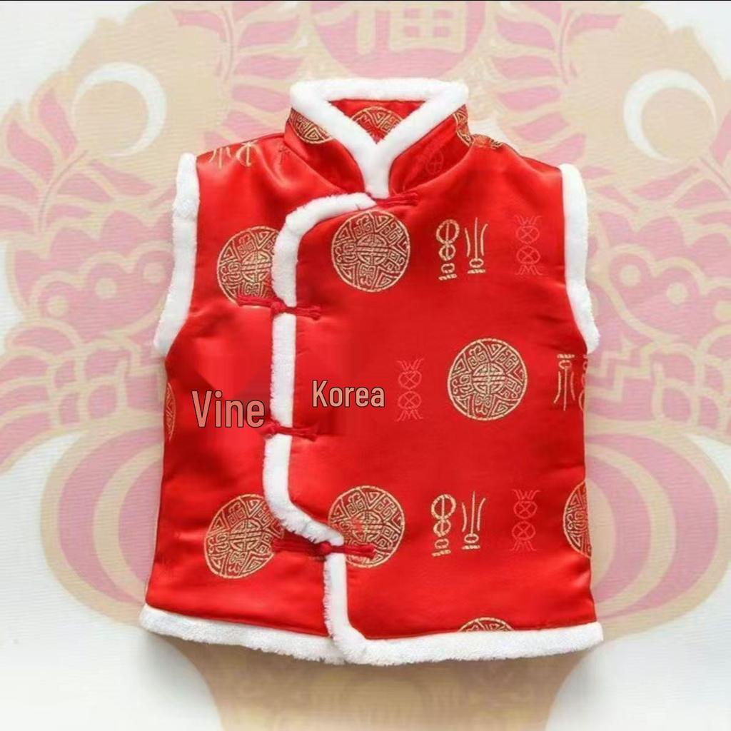 Children's New Year Tang Suit Vest, Kindergarten Cotton Vest, Festive Chinese Style Red Outfit for New Year Celebrations
