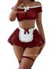 Sexy Lace Shoulder Maid Dress Seduction Cosplay Uniform Sexy Lingerie Set