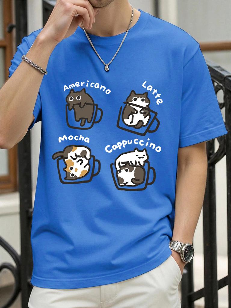 Cat Coffee Art Letter Printing TShirts Womens Cotton Summer Tops Soft Loose ONeck Short Sleeve T Shirts Casual Womans Clothes