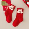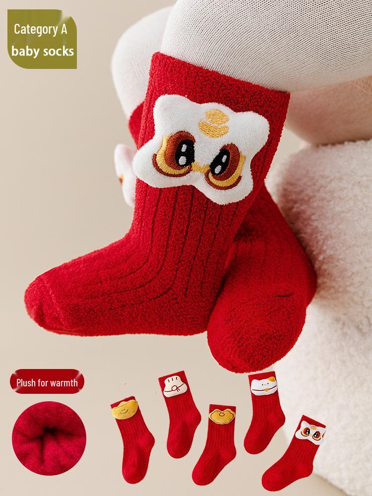 Velvet Lined Warm Red Horse Year Socks for Baby's First Birthday