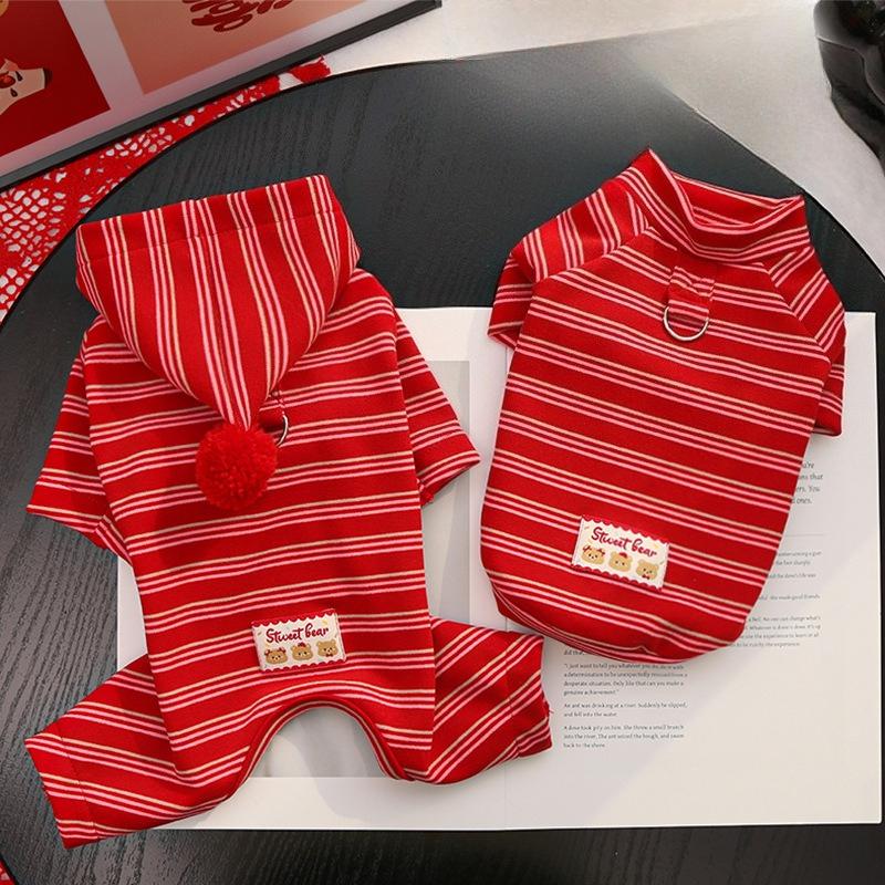 New Year Festive Red-striped Cashmere Pet Four-legged Coat, Warm and Cozy for Dogs and Cats.