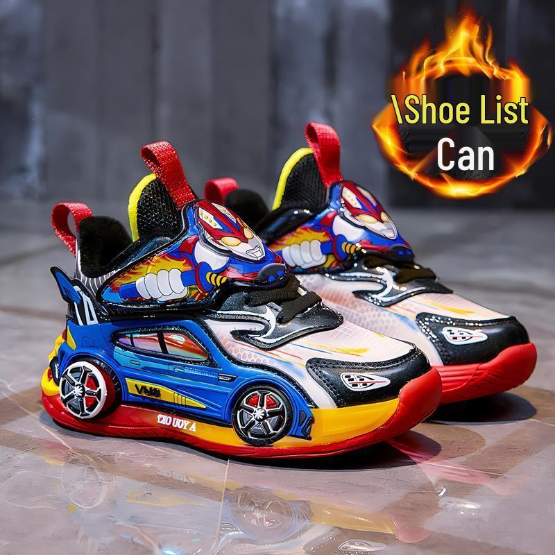 Ultraman Boys' Fleece-Lined Winter 2025 Cotton Running Shoes with Lights