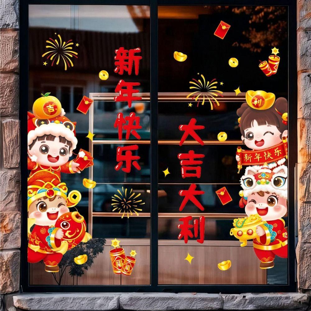 Double-Sided New Year Window Stickers Self-adhesive Removable Spring Festival Window Decals Horse Year Theme 2026 Edition
