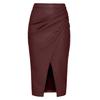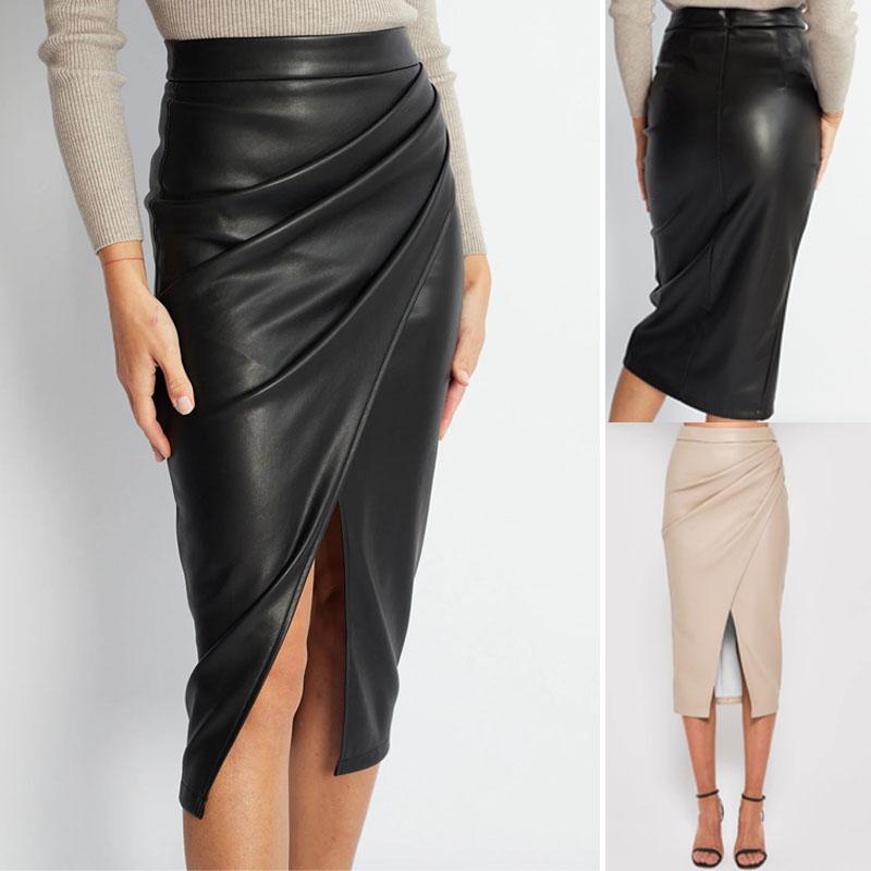Women Black Leather Skirt Autumn Over Knee High Waist PU Skirt Casual Female Plus Size Winter A-line