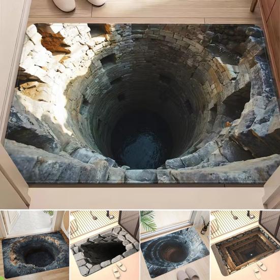 This 3D Hole floor mat features multiple optical illusion designs that create a striking visual depth effect, adding a unique and playful touch to your home decor. Perfect for hallways, living rooms, or entryways, each rug mimics a realistic hole, sparking curiosity and fun interactions with pets.