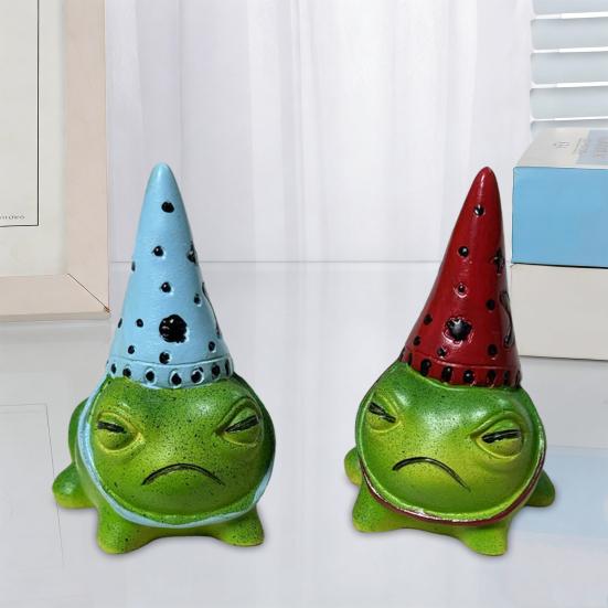 Adorable Frog with Charming Hat: Designed with a cute hat accessory, this resin frog adds personality and charm to your decor. The playful design creates a fantasy-inspired atmosphere, perfect for garden displays or planter pots seeking a touch of magic and fun.
