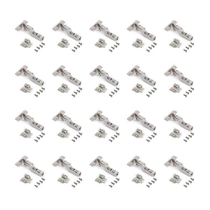 Emuca lot de 20 charnières super coudées x92 avec fermeture amortie et embases à visser, hauteur 0, acier, nickelé