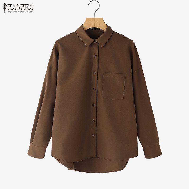 ZANZEA Women Casual Turn Down Collar Long Sleeve Loose Blouse
