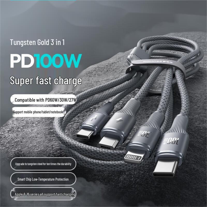 W&P 3-in-1 PD 100W Fast Charging Braided Data Cable