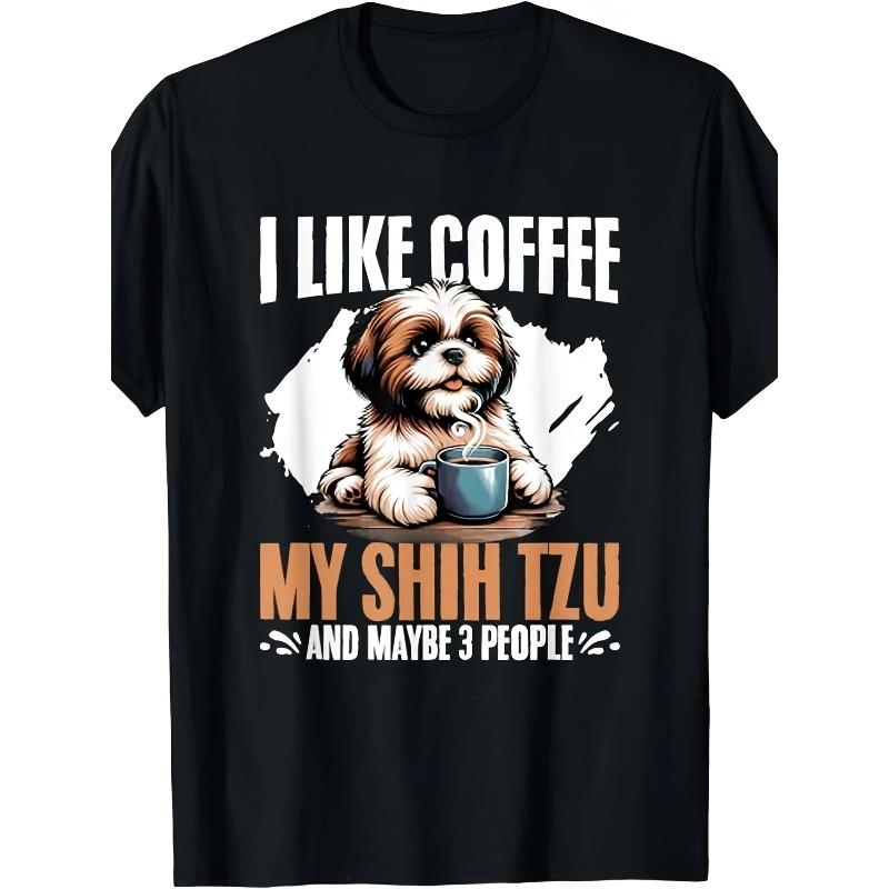 European Sizes I Like Coffee My Shih Tzu Maybe 3 People Dog Owner T-Shirt | Summer Short-Sleeved, Crew Neck