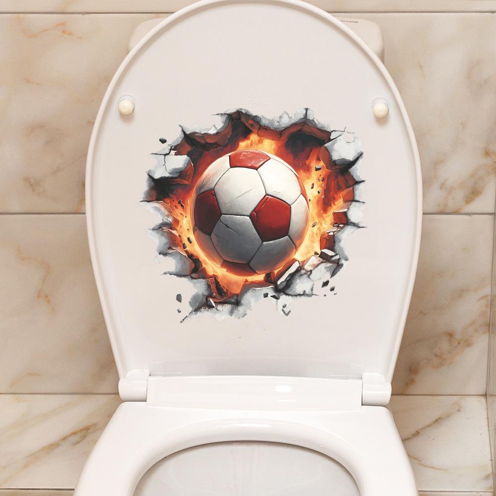 Flaming Soccer Ball Breaking Through Wall Sticker for Game Room Boys Bedroom Creative Removable Decal