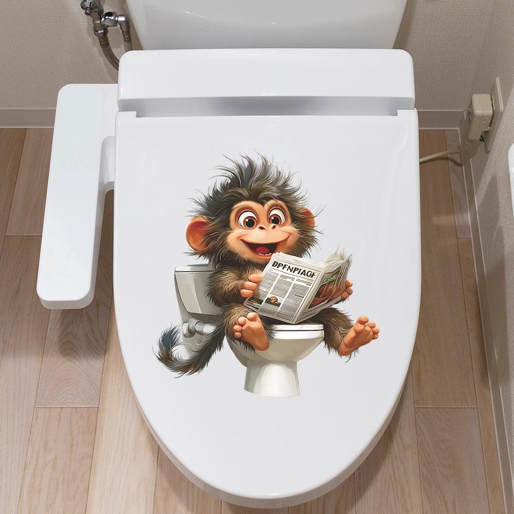 Funny Monkey Reading Newspaper On Toilet Seat Sticker Bathroom Decor Removable Self-Adhesive Decal