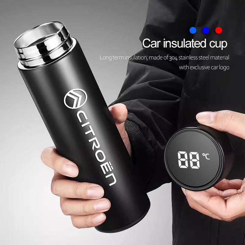 500ml Portable Car Logo Intelligent Stainless Steel Thermos Bottle For Citroen e-C3 e-C4 X C5X C3 C4 Cactus Picasso C-Crosser C6