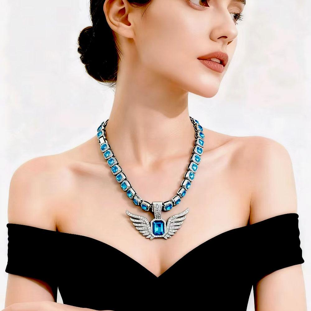 Light Luxury Niche Men's and Women's Fashionable Angel Wing Pendant, Ins, Wing Pendant, Emerald, Hip-hop, Rock Sugar Cuban Chain