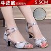 Women Prom Dance Sandals Latin Ballroom Shoes Salsa Dance Shoes Square Middle Heels Mixed Colors Buckle Sandals for Summer
