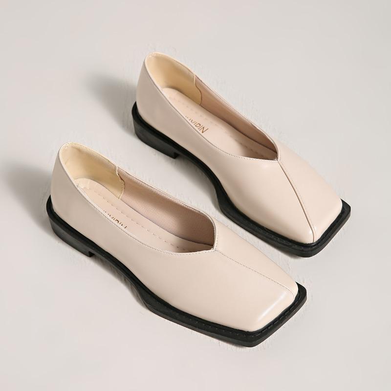 Slip-on Block Heel Single Shoes Fashion Square Toe Shallow Mouth Soft Sole Non-slip Block Heel Leather Shoes