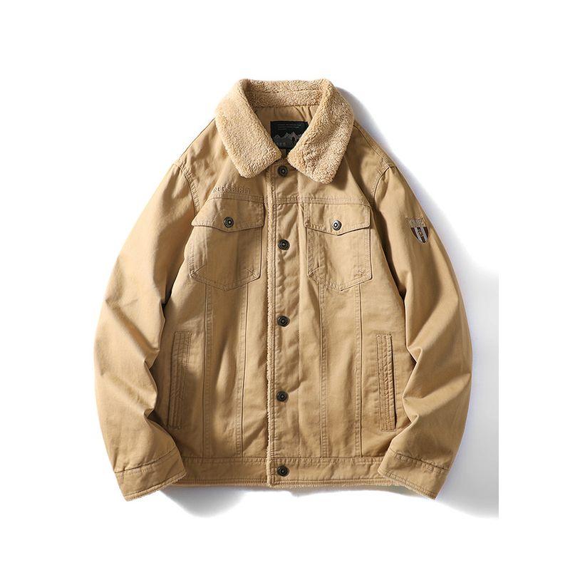 American Retro Workwear Jacket for Men, Winter Pure Cotton Fleece-Lined Thickened Jacket, Cotton Coat, Export Quality Lamb Wool Cotton Clothing