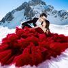 Red 2025 New Street Couple Clothing Question Fluffy Wedding Dress