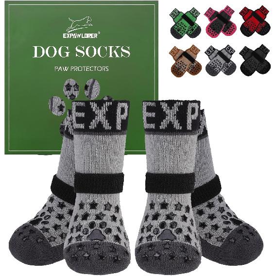 EXPAWLORER Anti Slip Dog Socks To Prevent Licking Paws - Dog Shoes for Hot Pavement, Dog Booties for Hardwood Floors, Dog Boots & Paw Protectors with