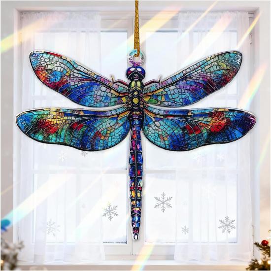 For Dragonfly Suncatcher Hanging Decor: Dragonfly Gifts for Women, Acrylic Stained Glass Effect Ornament, Unique Lucky Birthday Graduation, Perfect